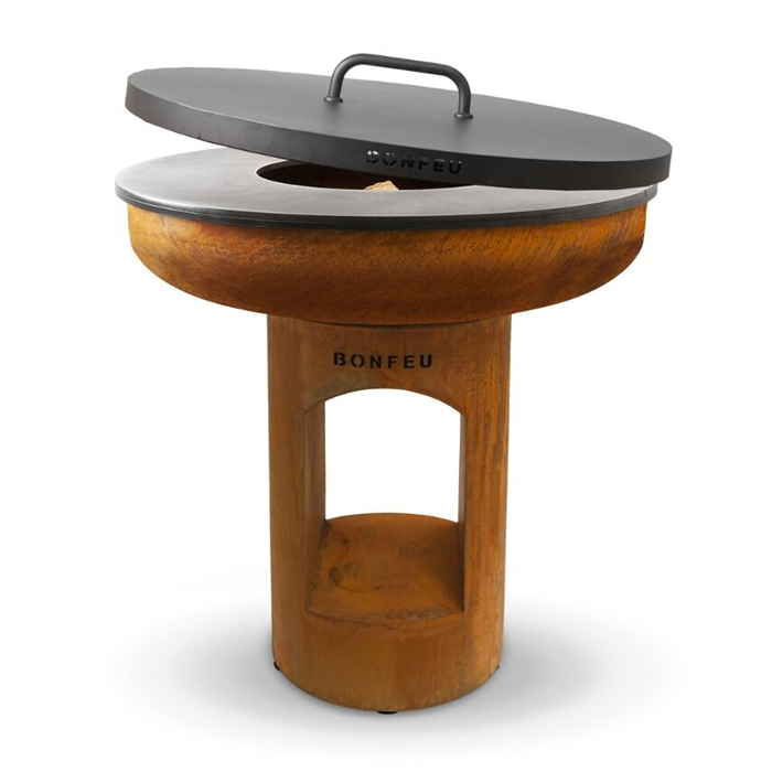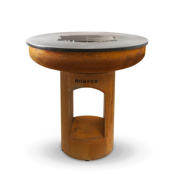 De BonBiza XL bestaat uit een ruime sokkel, een vuurschaal en een dikke 6 mm plancha. De grote plancha van 100 cm biedt uitgebreide kookmogelijkheden. Door het hout goed te verdelen in de vuurschaal creëer je een gelijkmatige warmteverdeling. Wil je liever verschillende warmtezones? Leg dan het hout aan één kant, zodat je een hete en een koelere kant op de plancha hebt. Zo kook je altijd precies op de juiste temperatuur.