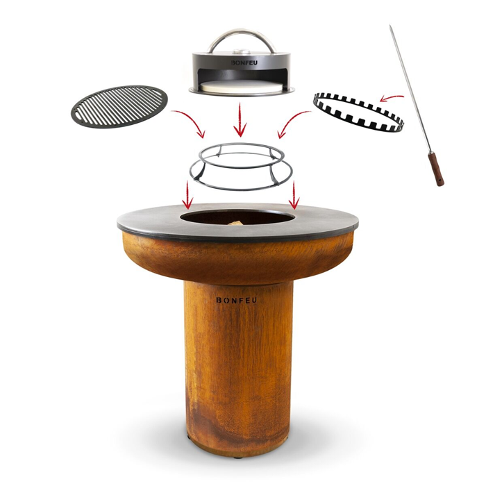 Net als de standaard BonBiza is ook de XL eenvoudig uit te breiden met diverse accessoires. Met de BonFeu standaard als basis kun je extra grillroosters, een pizza-oven, spiesen of een complete rotisserie set toevoegen. Zo maak je van de BonBiza XL een complete buitenkeuken die voor elk kookavontuur geschikt is.