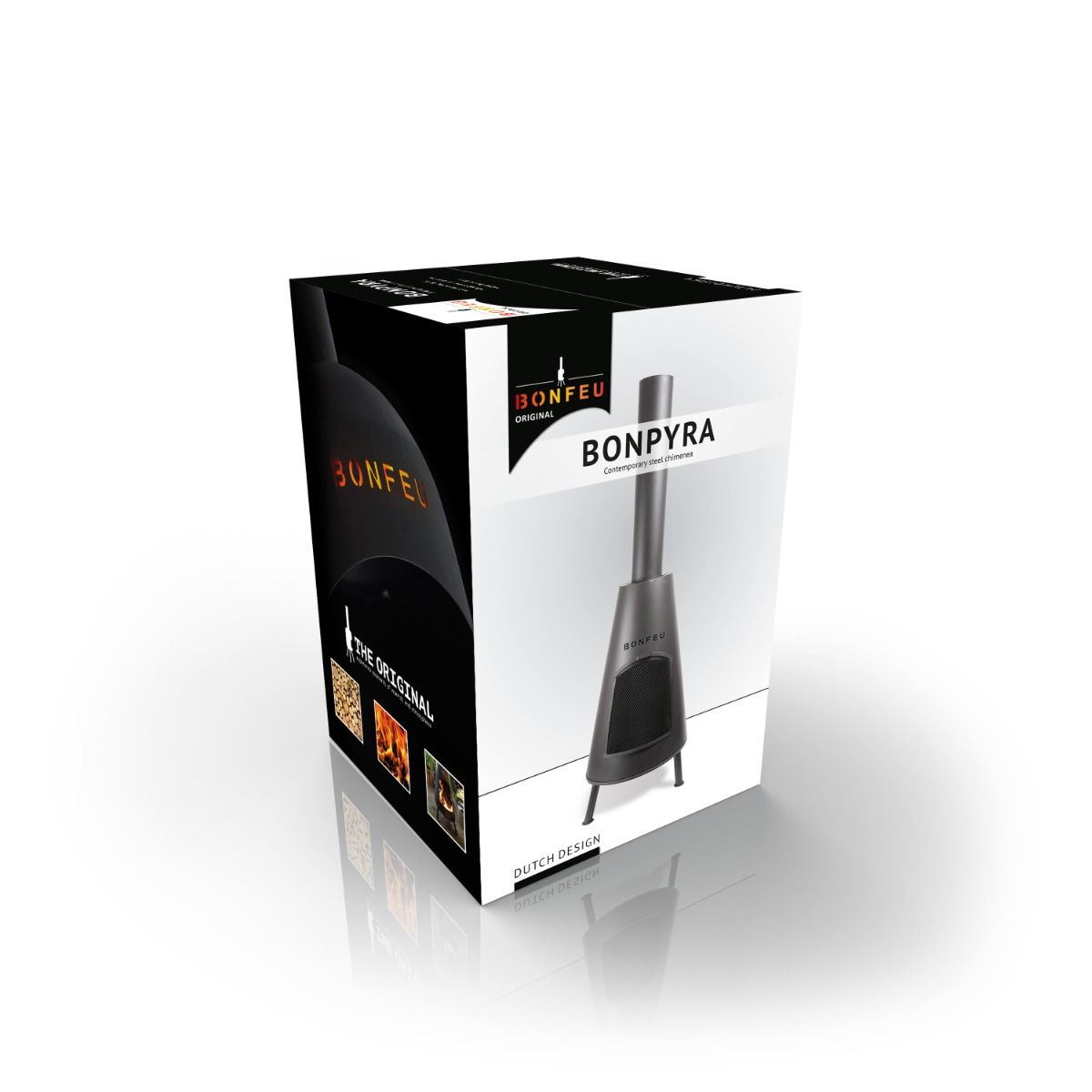 De BonFeu BonPyra is echt een prachtige tuinhaard! Met de kenmerkende drie pootjes en een handige aslade aan de achterkant van de haard, is dit nieuwe model een absolute aanwinst voor je tuin. De BonPyra is gemaakt van 1-2 mm dik staal en heeft een zwarte, hittebestendige lak. Dankzij het stijlvolle ontwerp en de hoge schoorsteenpijp heeft de haard een uitstekende rookafvoer. Je zult dus nauwelijks last hebben van hinderlijke rook.