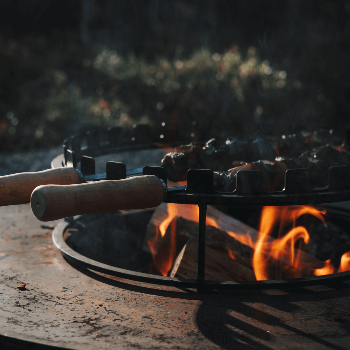 De spiezen zijn gemaakt van staal en voorzien van een houten handvat, zodat je ze gemakkelijk kunt omdraaien tijdens het bereiden. Voor optimaal gebruiksgemak plaats je de spiezenring in het midden van de bakplaat van de BonBiza – de bekende buitenkeuken van BonFeu. Laat de barbecue goed op temperatuur komen en leg vervolgens de gevulde spiezen in de ring. Drie spiezen tegelijk werkt het handigst en zorgt voor het beste grillresultaat.