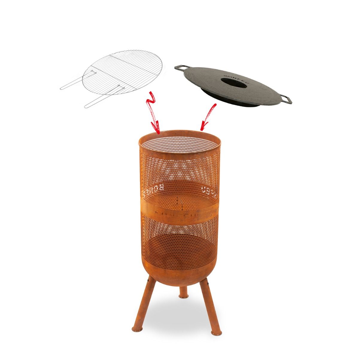 De BonVes wordt standaard geleverd met een handig grillrooster. Hiermee kun je eenvoudig vlees of vis grillen voor je gasten. Het rooster plaats je simpelweg bovenop de vuurkorf en verwijder je weer als je klaar bent met grillen. Zo geniet je daarna van een sfeervol haardvuur. Wil je liever bakken met een bakplaat? Dat kan ook, want de BonVes is uit te breiden met een plancha.