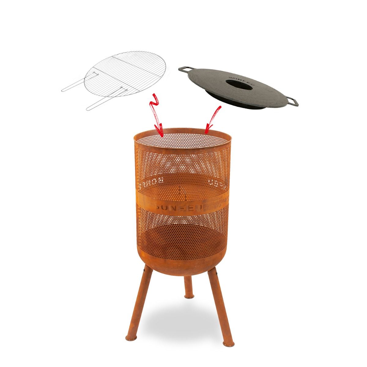 Deze vuurkorf wordt standaard geleverd met een grillrooster, waarmee je eenvoudig vlees, vis of groenten kunt bereiden boven het open vuur. Het rooster is makkelijk te plaatsen en te verwijderen, zodat je na het grillen heerlijk kunt nagenieten van het knisperende vuur. Voor nog meer kookplezier kun je de BonVes uitbreiden met een optionele plancha.