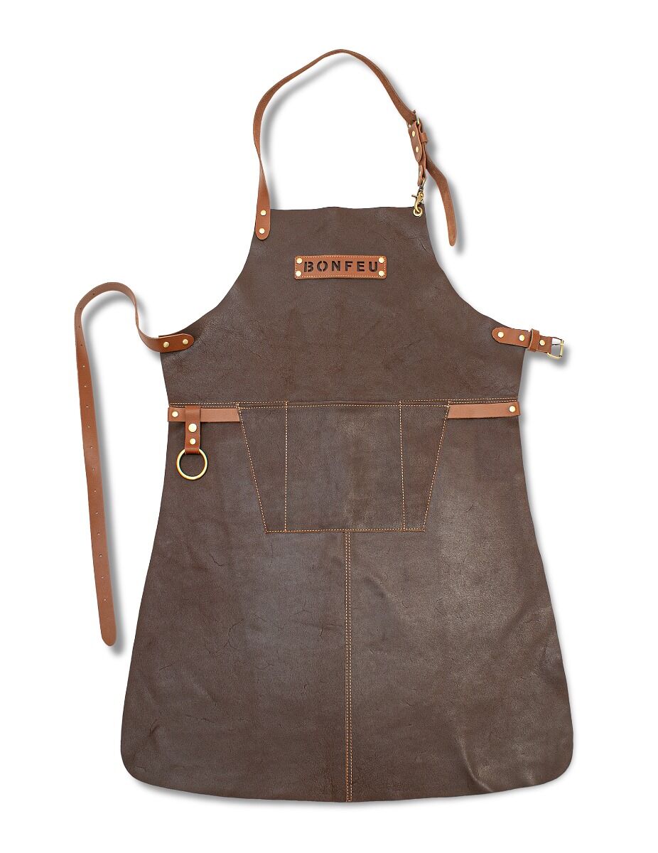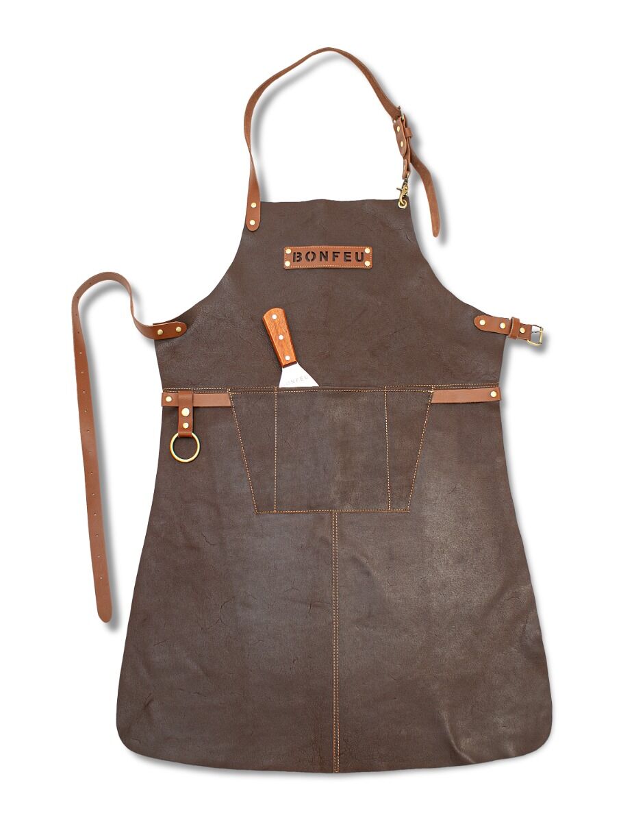 Naast het koken of het barbecueën is het plaatje natuurlijk niet compleet zonder een professioneel lederen schort van BonFeu. Stoer, stijlvol en comfortabel: het Dutch design schort van BonFeu is perfect om te dragen in de keuken en tijdens het barbecueën. Het leren schort is vervaardigd uit hoogwaardig leer en herkenbaar aan de verschillende bruintinten en het logo dat op de voorkant is geborduurd en gestanst.