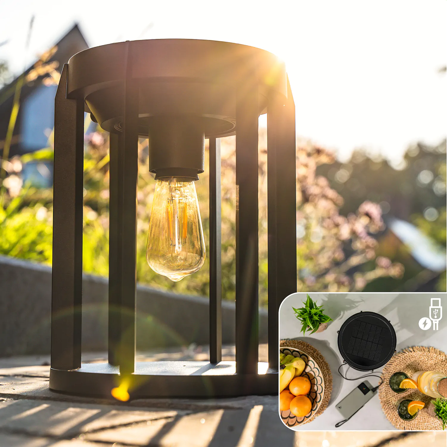 Deze veelzijdige lamp laad je eenvoudig op via zonne-energie of met een USB-C kabel. Laat de lamp overdag buiten staan, zodat het efficiënte zonnepaneel de batterij oplaadt. Zelfs bij minder stabiel weer wordt doorgaans voldoende energie verzameld om de lamp goed te laten functioneren. Opladen via het stopcontact kan ook; in dat geval is de batterij in ongeveer 5,5 uur volledig opgeladen.