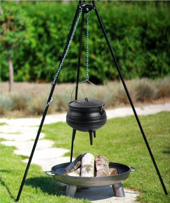 Gietijzer is uitermate geschikt voor langzaam koken. Het materiaal verdeelt de warmte geleidelijk en houdt deze langdurig vast, waardoor stoofpotten en soepen optimaal kunnen sudderen. De pot is bestand tegen hoge temperaturen en kan zowel direct in het vuur worden geplaatst als boven het vuur worden gehangen aan een ketting via een driepoot. Dit maakt hem bijzonder veelzijdig voor gebruik in de buitenlucht.