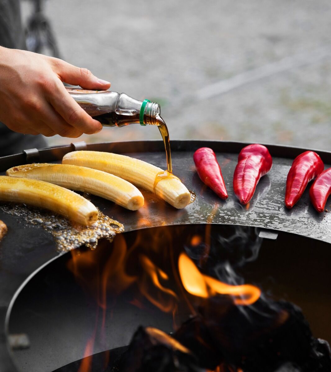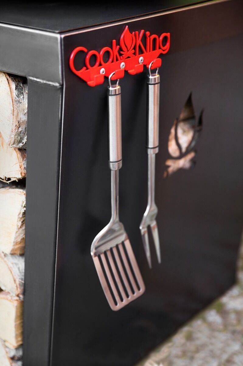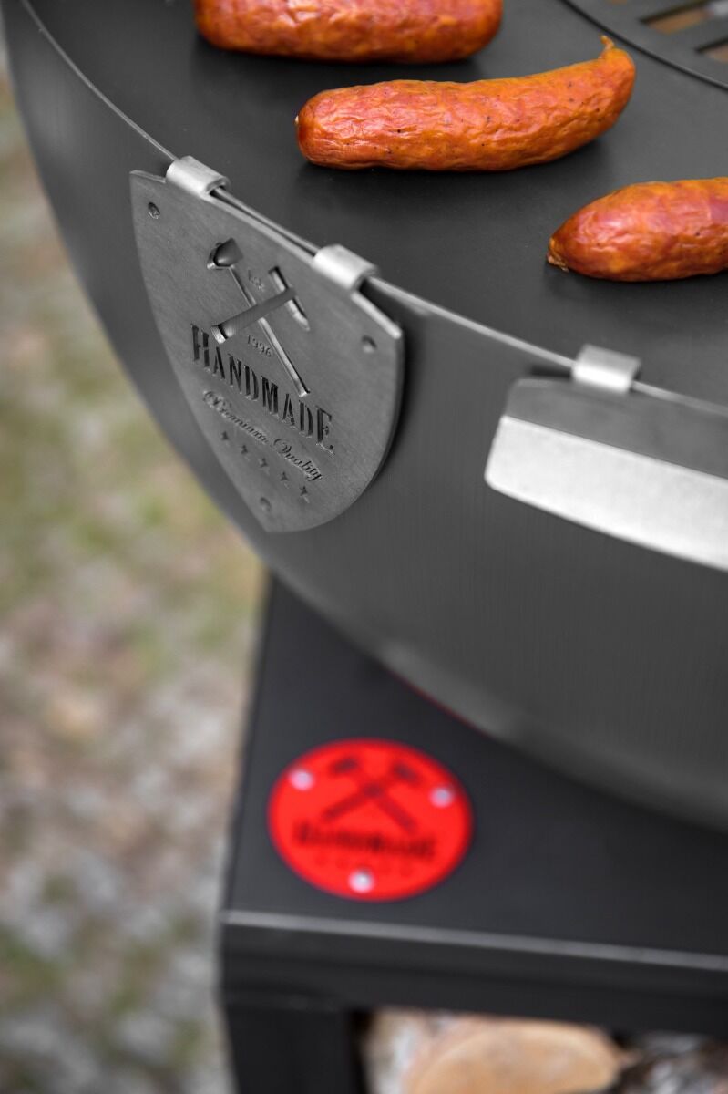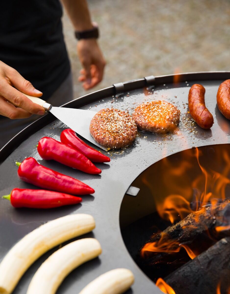 Met een totale hoogte van 103 cm kun je comfortabel staan tijdens het koken. De houtopslag houdt het hout droog, zodat het direct gebruikt kan worden. De grillplaat heeft een diameter van 85 cm en is gemaakt van 3 mm dik staal, net als de vuurschaal zelf. Hierdoor kun je in één keer voldoende ingrediënten klaarmaken, bijvoorbeeld sappige hamburgers op de grillplaat, of losse ingrediënten en pannen op het grillrooster. Met een gewicht van 60 kg staat de grill stevig en stabiel.