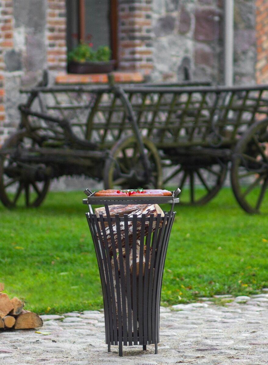 Bovenop de vuurkorf bevindt zich een ronde ring die het mogelijk maakt om eenvoudig een grillrooster te plaatsen. Dankzij de hoogte van 76 cm is deze vuurkorf bijzonder geschikt om bij te koken. Voor het beste grillresultaat laat je eerst een flink vuur branden, waarna je wacht tot het smeult. De gelijkmatige hitte van het houtvuur zorgt ervoor dat je ingrediënten snel en smaakvol worden bereid.