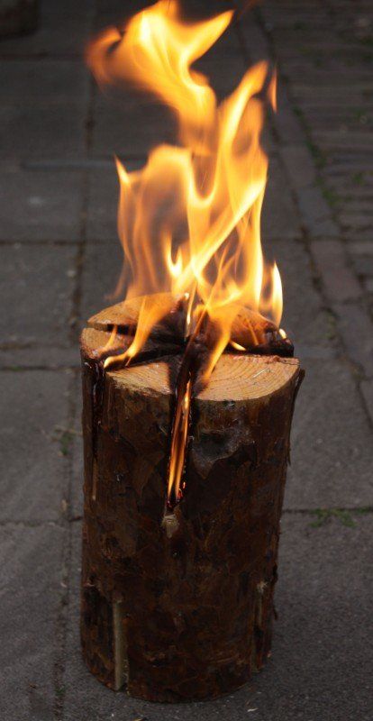 De Zweedse fakkel is een ingezaagd houtblok en verkrijgbaar in diverse hoogtes. De verticale zaagsneden zorgen voor optimale luchttoevoer, waardoor het blok volledig opbrandt tot aan de grond. De brandduur varieert afhankelijk van weersomstandigheden. Aansteken is eenvoudig: in de kern van de stam zit een aanmaakblokje dat u alleen maar hoeft aan te steken.