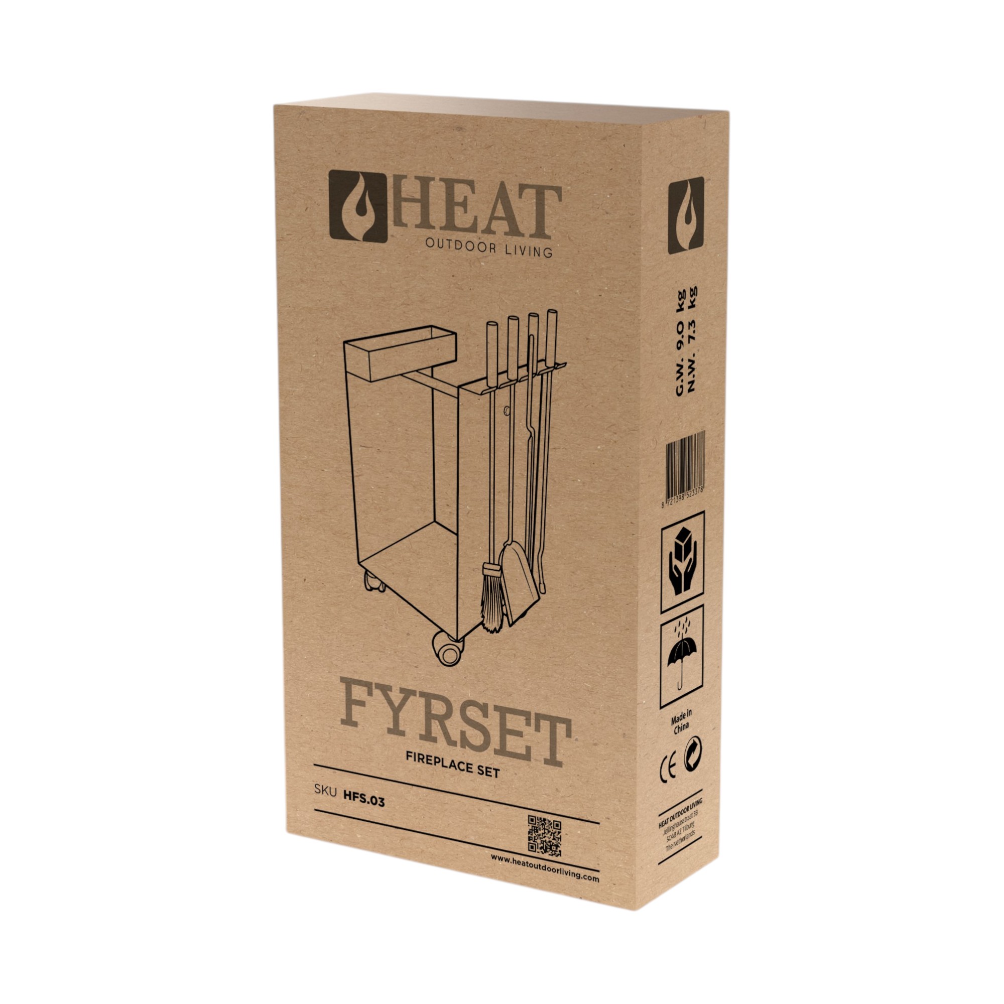 De HEAT Fyrset Plus is een praktische totaaloplossing voor wie comfort, mobiliteit en een netjes georganiseerd terras belangrijk vindt. Deze set is ontworpen als een compact, verrijdbaar station waarin je niet alleen je haardgereedschap, maar ook houtblokken en accessoires eenvoudig kunt opbergen.