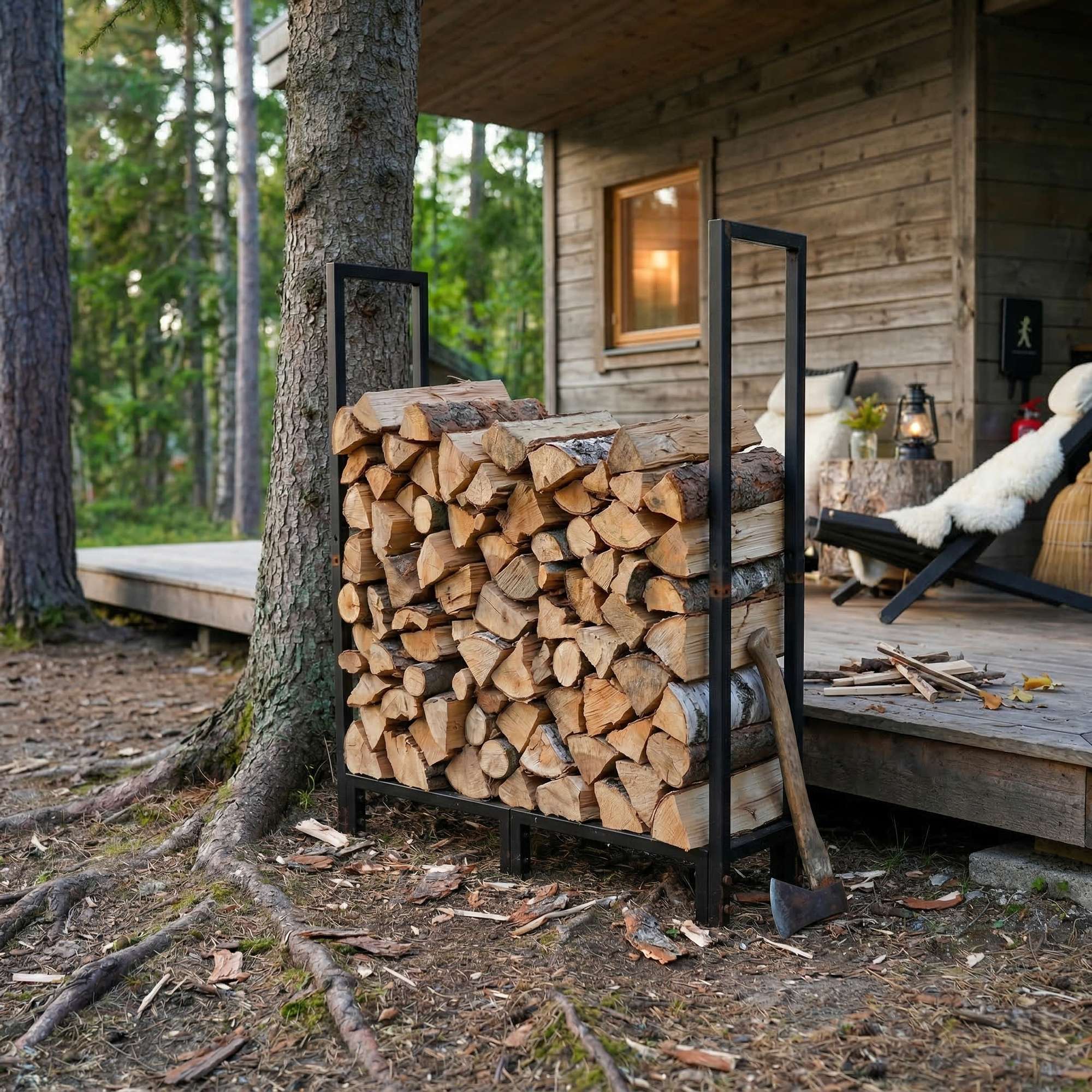 Net als de kleinere variant wordt de Trelopp XL geleverd als een praktisch bouwpakket. De montage is eenvoudig en snel, zonder dat je extra gereedschap nodig hebt, zodat je direct aan de slag kunt met het ordenen van je houtvoorraad.
