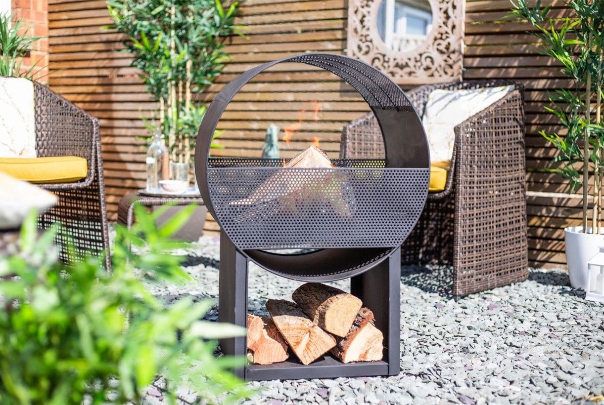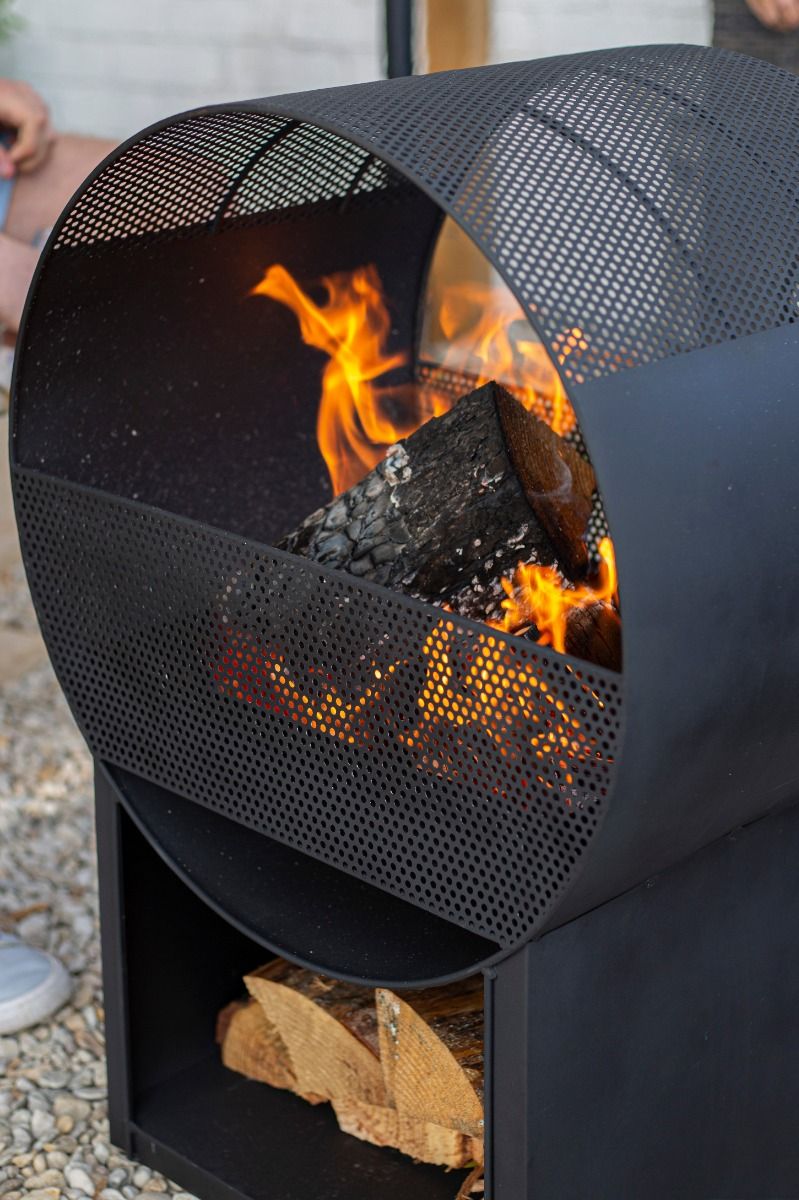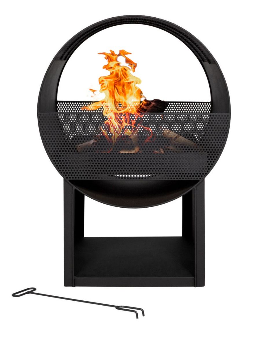 De ronde haard staat op een stevige voet die niet alleen voor stabiliteit zorgt, maar ook ruimte biedt voor houtopslag. Zo heb je altijd haardhout binnen handbereik én geef je je terras een extra decoratief element. Een handige pook wordt meegeleverd.