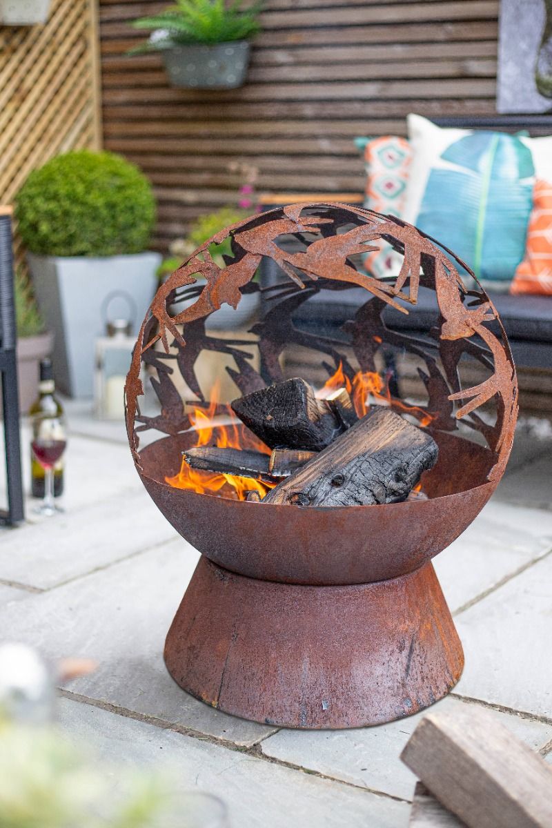 De La Hacienda Swallows is gemaakt van geroest staal en voorzien van een prachtig lasergesneden ontwerp. Het geoxideerde materiaal zorgt voor een mooie verweerde afwerking die past in zowel de moderne als klassieke tuin. Door zijn ronde vorm heeft u van alle kanten zicht op het sfeervolle haardvuur. De vuurbal heeft een diameter van maar liefst Ø50 cm en ligt op een stabiele gietijzeren voet waardoor deze veilig is te gebruiken.