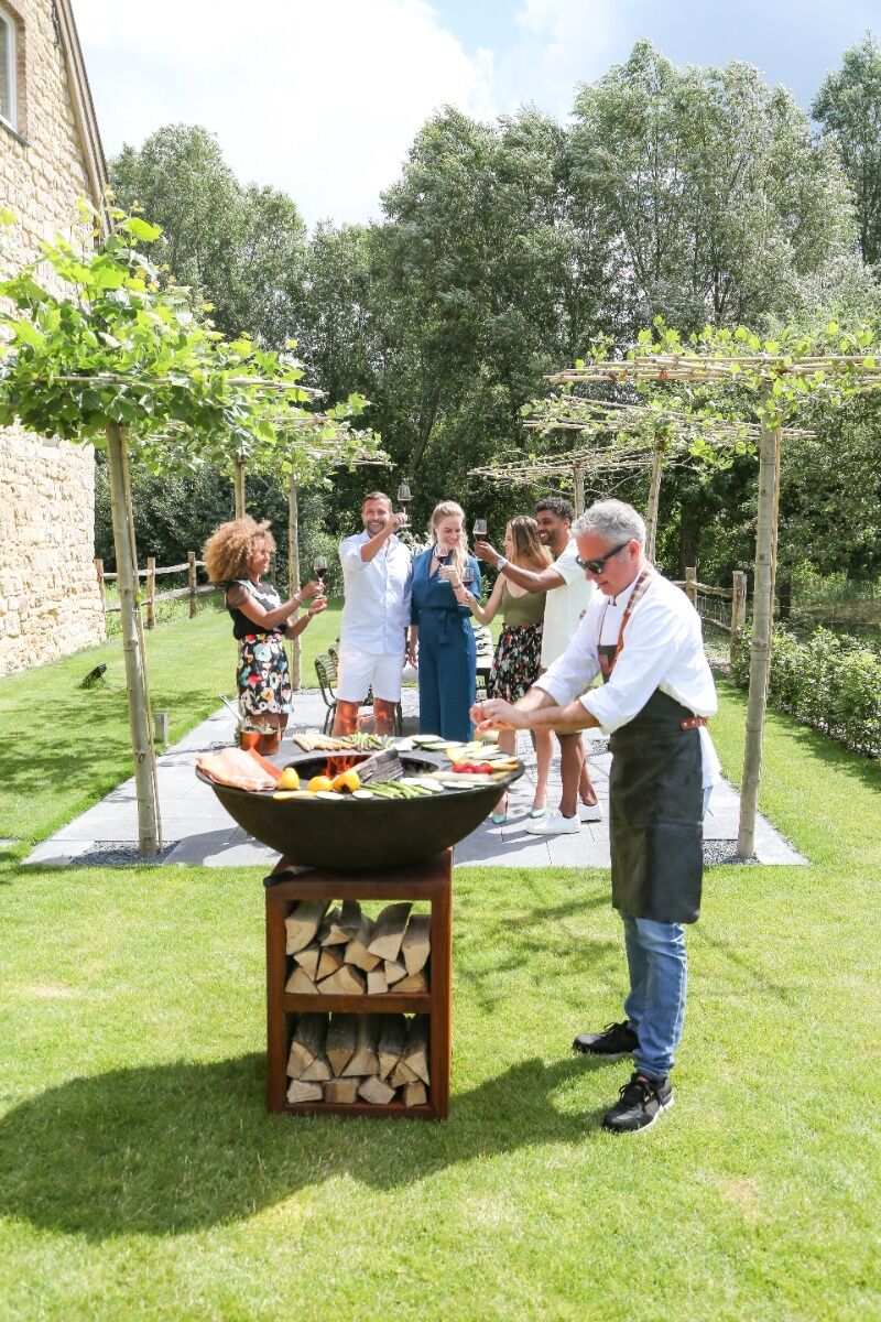 -Buitenkeuken bestaande uit sokkel, vuurschaal en bakplaat