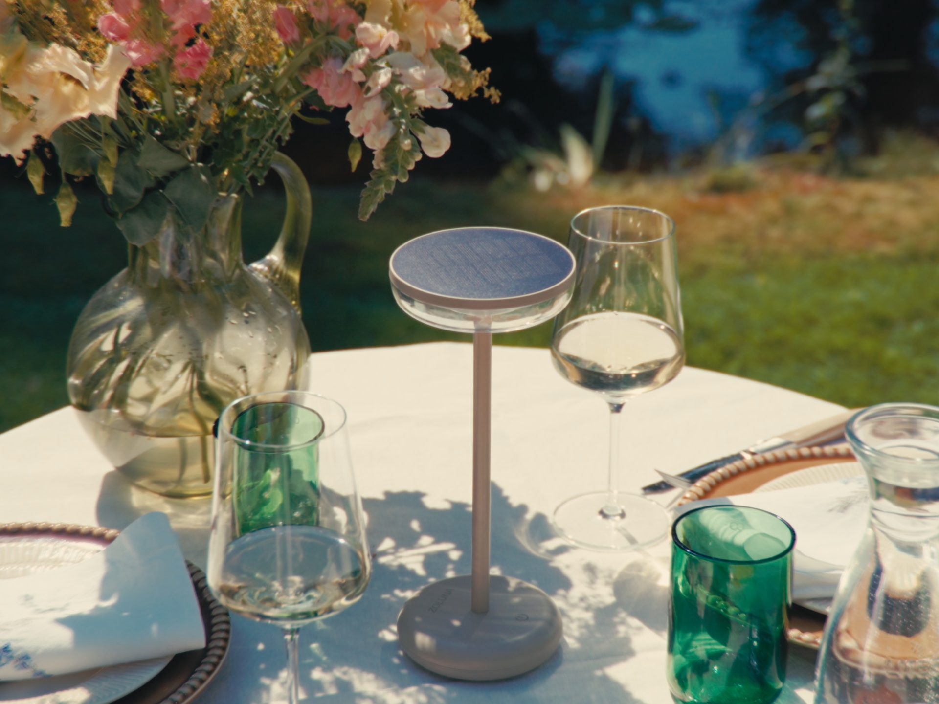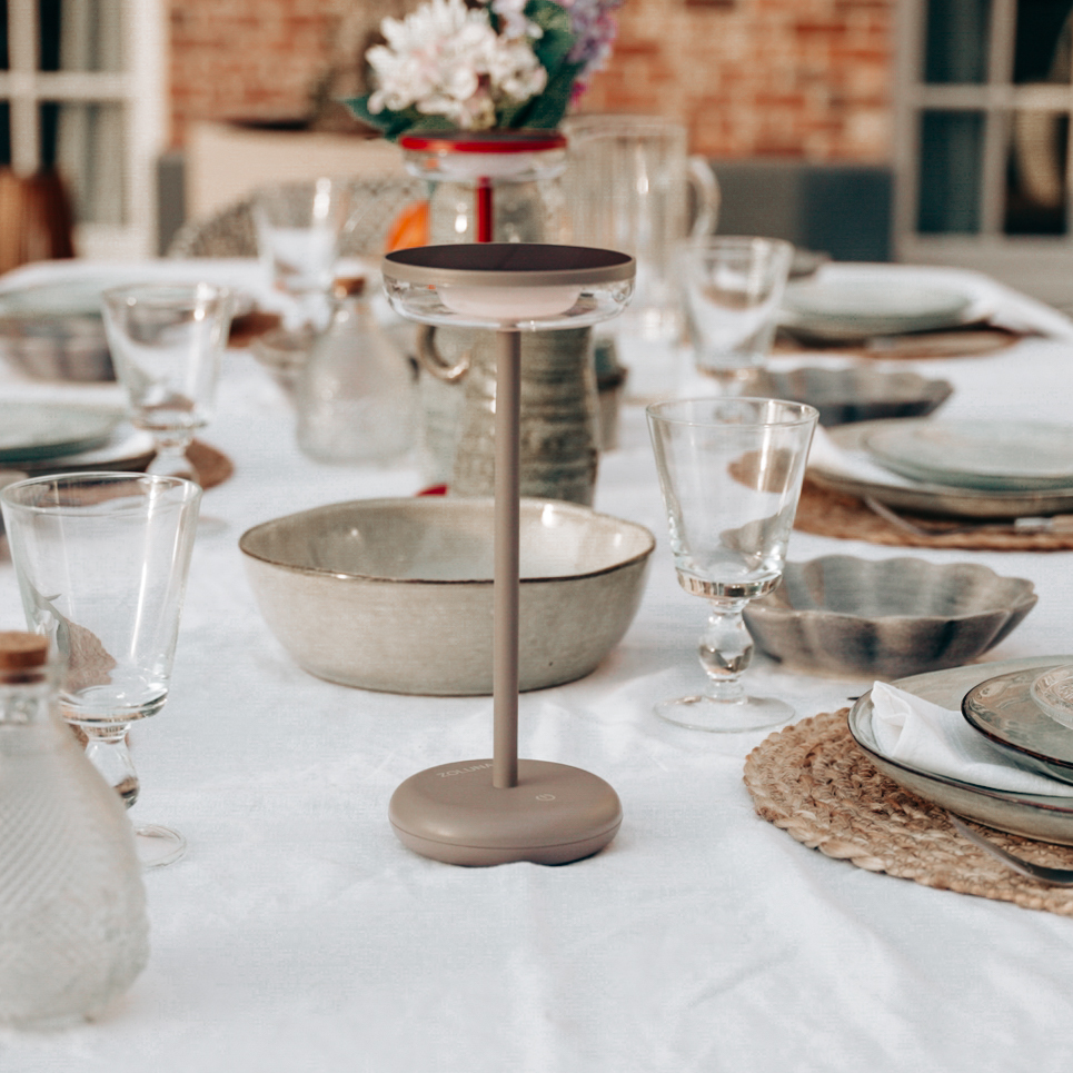 ZOLUNA Bobbie is een stijlvolle solar tafellamp die moeiteloos sfeer toevoegt aan elke buitenruimte. Met één lichte aanraking schakel je het warme licht in of uit. Houd je de knop langer ingedrukt, dan pas je eenvoudig de lichtsterkte aan naar jouw voorkeur. De lamp heeft een tijdloze en elegante uitstraling, perfect voor een diner op het terras of een gezellige zithoek in de tuin.